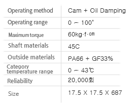 - Operating method : 90º ~ 70º Free Section