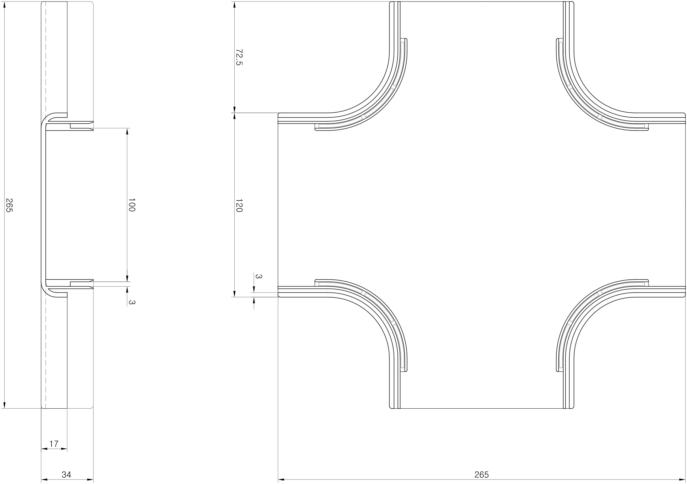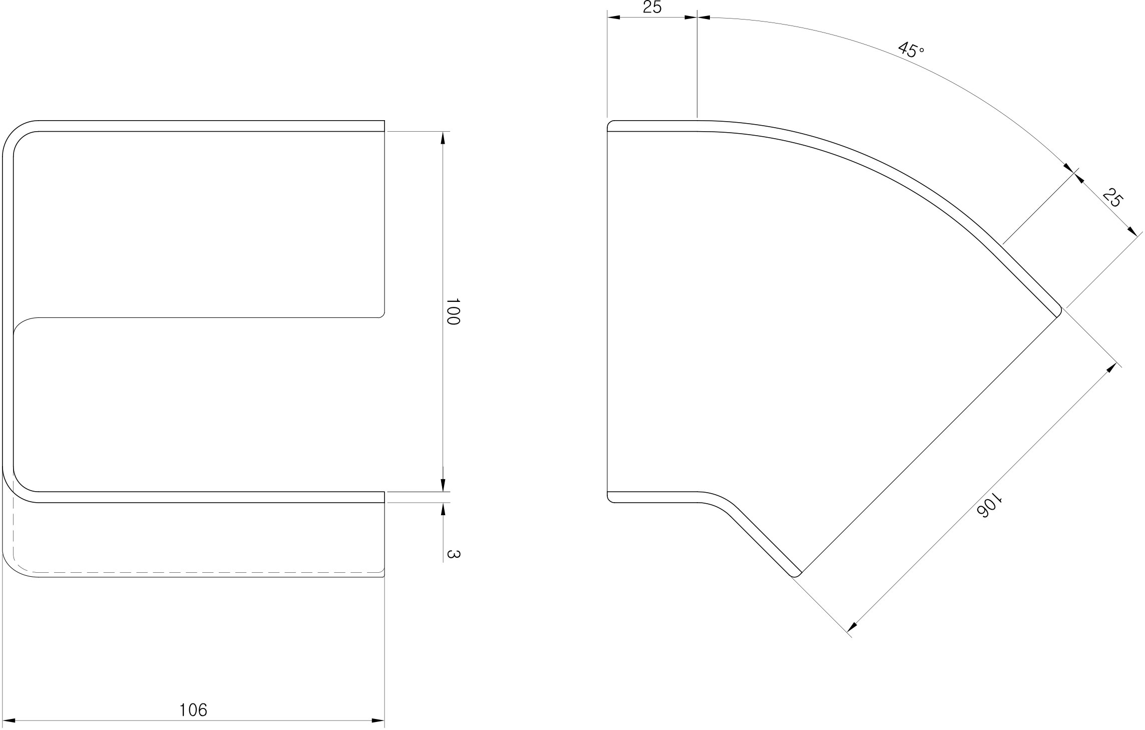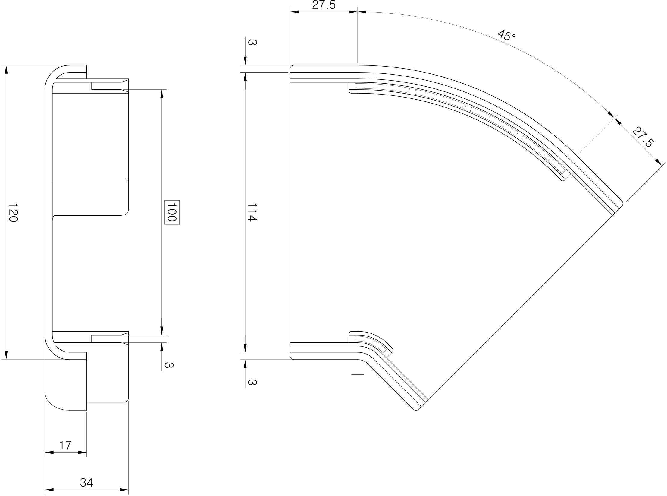 100 V-E 45’ Up Cover 100mm×100mm Length : 87.5mm |