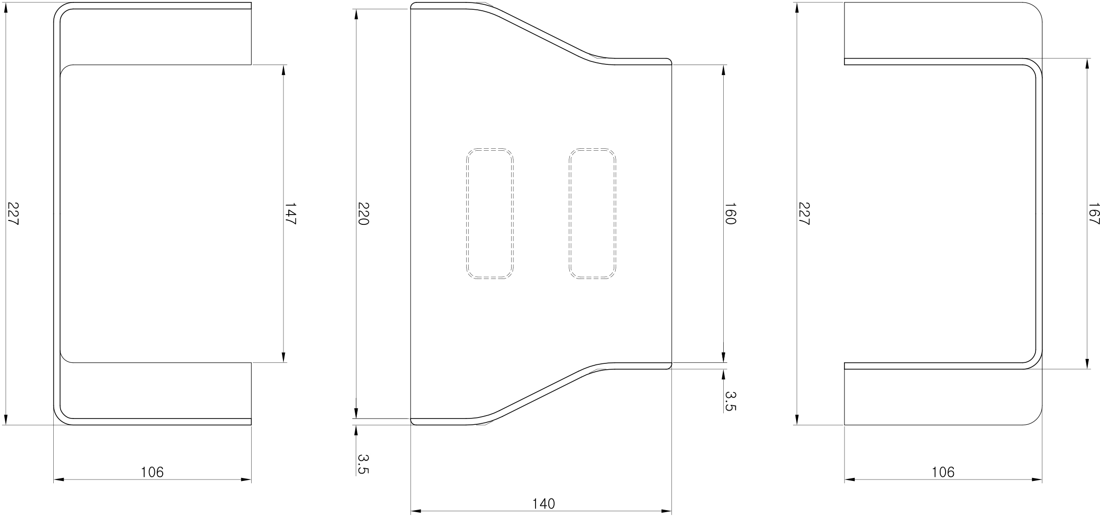 220~160 Reducers Cover 220mm×100mm → 160mm×100mm Length : 147mm |
