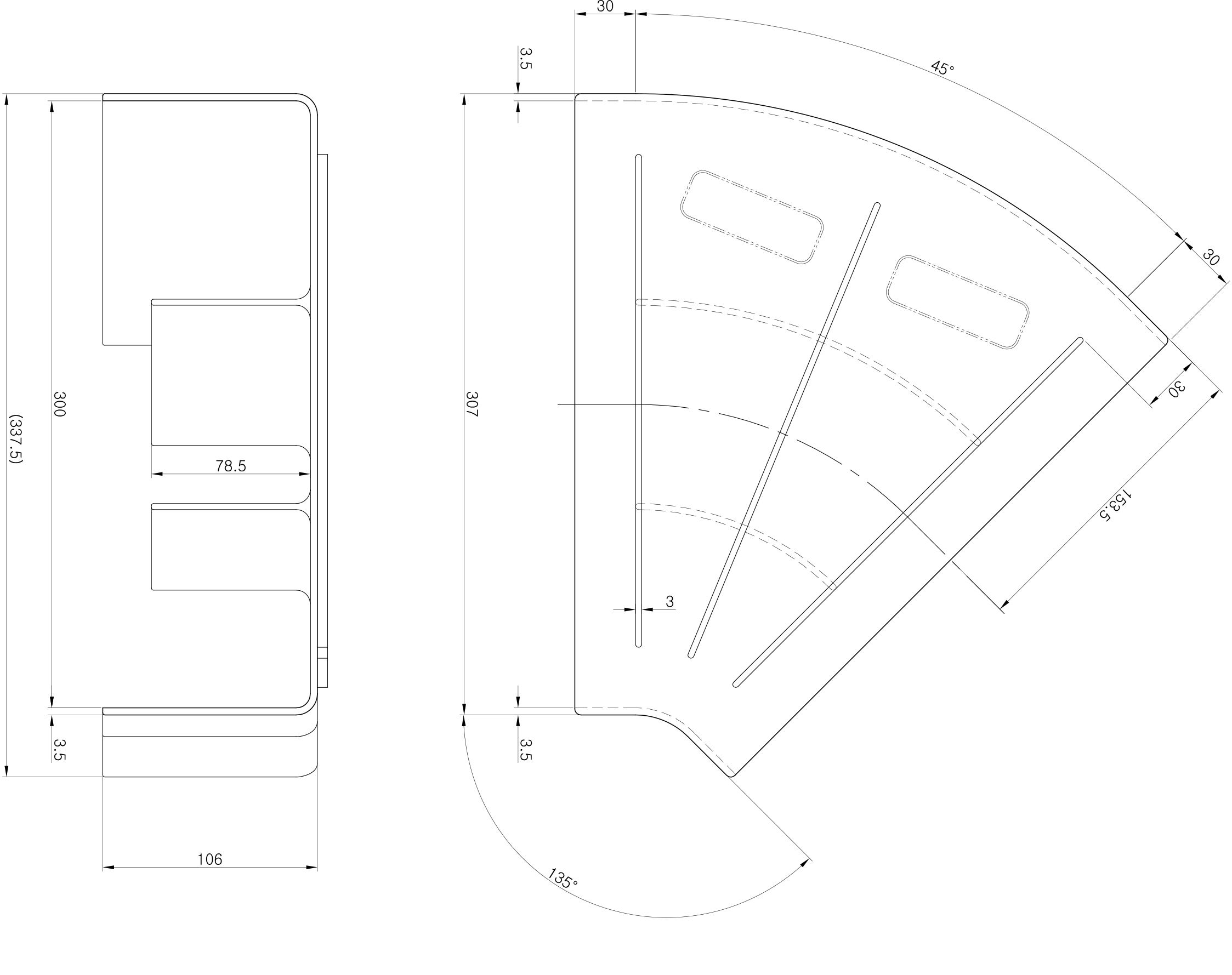 300 H-Elbow 45’ 300mm×100mm Length : 373.5mm |